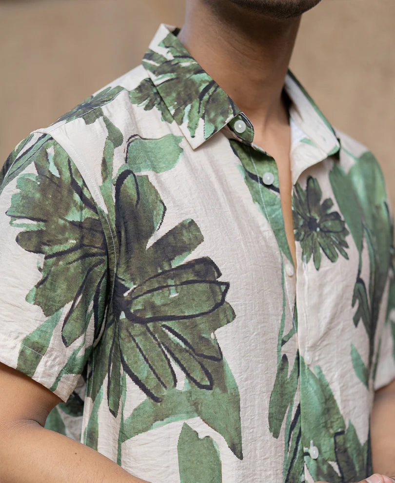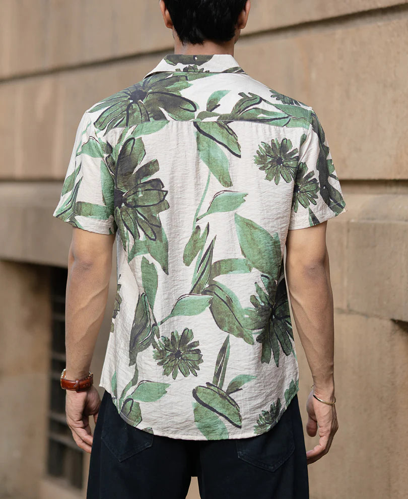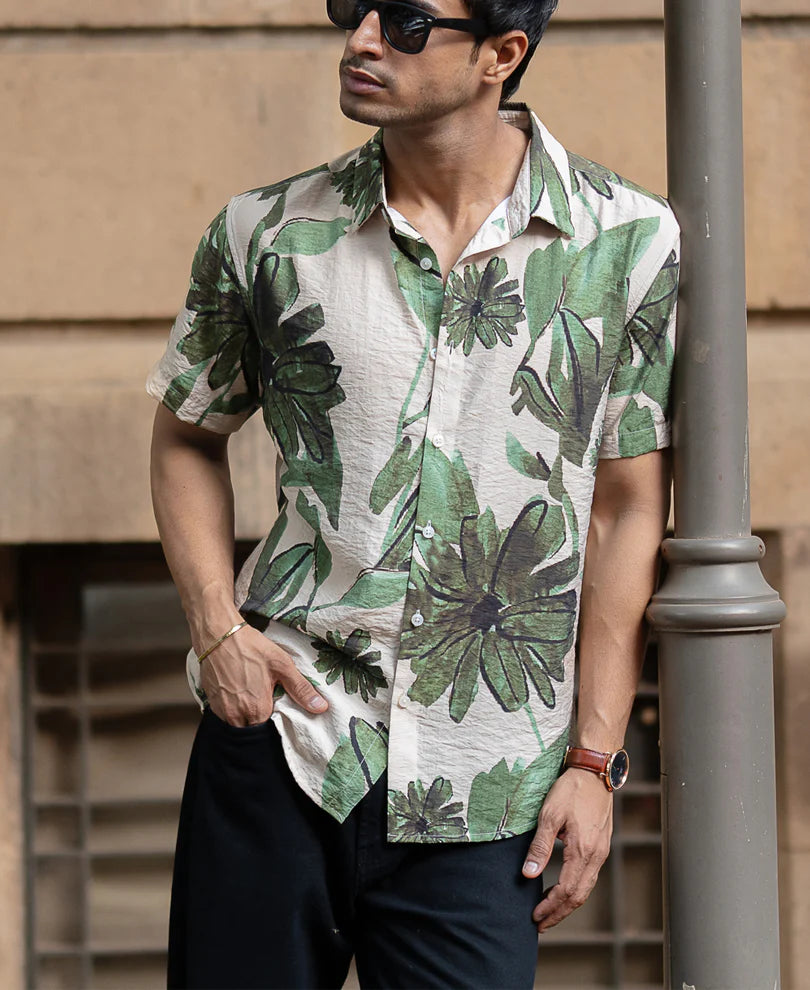 The standout feature of this shirt is its designer floral print, which adds elegance and visual interest. The pattern is thoughtfully placed to create a balanced and harmonious aesthetic, making the shirt suitable for both casual and semi-formal occasions. Its classic collar, button-down front, and neatly finished cuffs provide structure and sophistication, while the tailored fit enhances the natural silhouette without restricting movement.