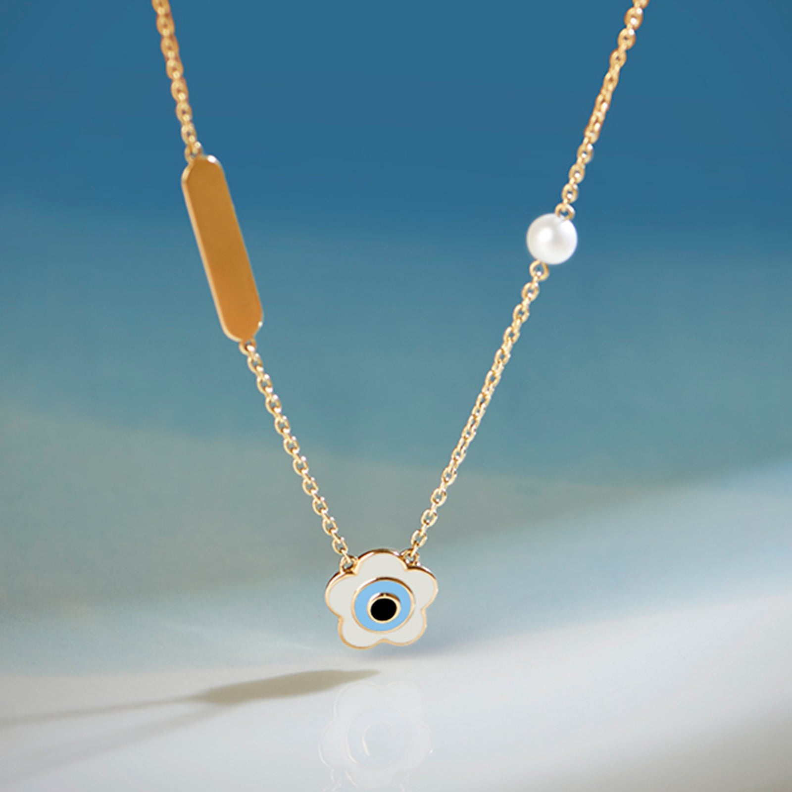The necklace is crafted from high-quality materials to ensure durability, shine, and lasting beauty. The pendant is lightweight, allowing for comfortable wear throughout the day without causing any strain on the neck. The evil eye charm is intricately detailed, offering a bold yet refined aesthetic, while the gemstone pendant can be customized according to personal preferences, making the necklace truly unique and special.